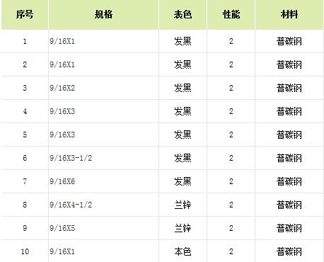 2级美制外六角(2):现货(M9/16-12,M5/8-11,M3/4-10,M7/8-9,M1'-8,M1-1/8,M1-1/4,M1-1/2,M1-3/4,M2')